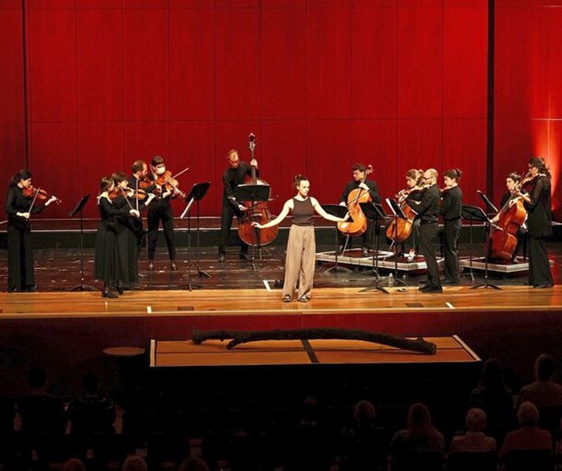 Zum meditativen Innehalten, das von Domin-Versen angeregt wurde, führten zwei kontrastreiche Stücke aus Anton Weberns „Fünf Sätze“ (op.5). Besonders intensiv gelangen die Übergänge von Sprache und Musik mit Domins Verszeile „Ich setzte den Fuß in die Luft, und sie trug“ und Jean Sibelius‘ „Humoreske IV“ (op. 89b) für (die von Sachiko Kobayashi gespielte) Solovioline und Orchester. Das Gedicht „Nur eine Rose“ führte zu Edvard Griegs melodienseligem Orchesterstück „Varen“ (Letzter Frühling) op.34.
